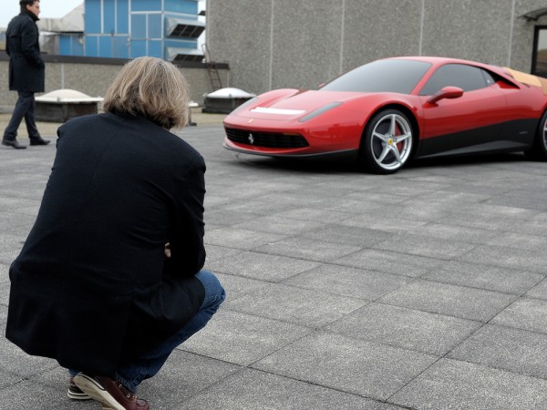Eric Clapton đang ngắm nhìn chiếc SP12 EC tại phòng trưng bày của Ferrari ở quận Kensington, London, Anh quốc