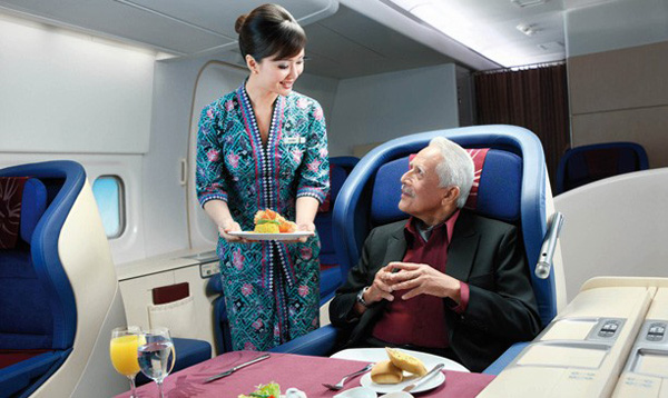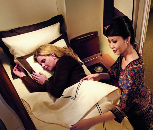 Không chỉ trang bị một chiếc giường nằm rộng, êm ái, với hệ thống giài trí đa phương tiện từ màn hình tivi 23 inch, hành khách lựa chọn khoang hạng nhất của Singapore Airlines còn được hưởng sự chăm sóc đặc biệt từ đội nữ tiếp viên xinh đẹp.