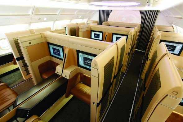 Ngoài những tiện nghi như ghế ngồi, giường ngủ, hành khách còn được cung cấp dịch vụ spa, quầy bar và các hệ thống giải trí hiện đại. Điều đặc biệt là hành khách trên khoang còn có phòng tắm riêng với hệ thống cài thời gian tự động. Hiện khoang này áp dụng trên các chuyến bay từ Dubai tới London. Và nếu yêu cầu, hành khách còn có thể được đưa đón bằng ô tô riêng sang trọng tới khách sạn hoặc các địa điểm du lịch.