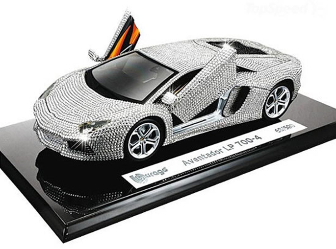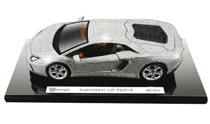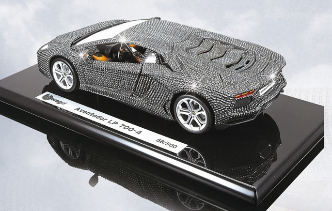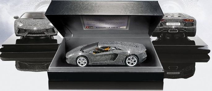 Mẫu xe mô hình Aventador LP 700-4 kích thước 1:18 này do Burago sản xuất và được bọc kín bằng pha lê Swarovski.