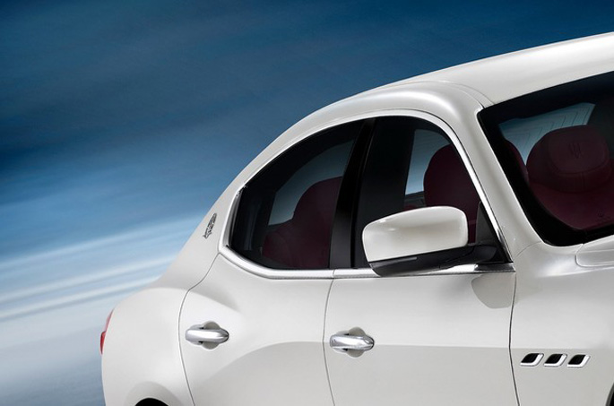 Khi nhìn từ phía trước và hai bên, Ghibli vay mượn phong cách từ Quattroporte mới được công bố như chắn bùn phồng lên, đèn pha LED và đường mui dốc. Ngược lại, phần đuôi sở hữu đèn hậu góc cạnh và nắp khoanh hành lý cao khiến chiếc xe khác biệt so với Quattroporte.