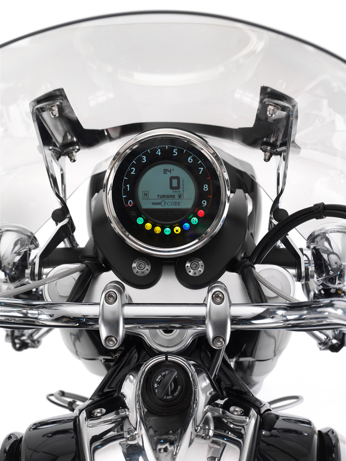 Bên cạnh Vespa 946 hoài cổ là sự mạnh mẽ tương phản của Moto Guzzi California 1400 Touring và các mẫu Custom (tùy chỉnh). Theo Piaggio, Moto Guzzi California 1400 Touring sở hữu động cơ hai xi-lanh lớn nhất từng được sản xuất ở châu Âu. Với dung tích 1380cc, động cơ này cho công suất 96 mã lực và mô-men xoắn 88lb-ft. Nhưng đó chưa phải là tất cả những gì khiến cho 1400 Touring đặc biệt. Rất nhiều các chi tiết nhỏ khác đều gây ấn tượng với khách tham quan khi đến triển lãm.