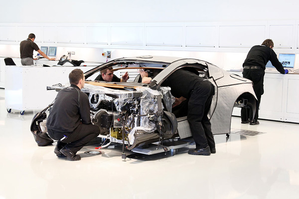 Đặt chân vào khu vực sản xuất One-77, nhiều người sẽ cảm thấy vô cùng ngạc nhiên khi có cảm giác như mình đang đứng trước một showroom trưng bày sản phẩm hơn là một xưởng sản xuất. Sạch sẽ và ngăn nắp là những ấn tượng đầu tiên chúng ta được thấy. Ở đó, người ta không thấy bóng dáng của những chú robot, mà thay vào đó là các kỹ sư bậc thầy trong ngành công nghiệp ô tô, tự tay chăm chút cho từng khâu nhỏ nhất của quá trình sản xuất.