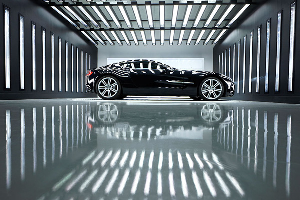 Điều đặc biệt là, khi đến nhận sản phẩm, khách hàng sẽ được đưa vào một căn phòng tối thui và chờ đợi. Sau đó, 500 chiếc đèn LED sẽ bật sáng, soi chiếu vào nhân vật chính là chiếc One-77, và ánh sáng dần xuất hiện trở lại để khách hàng có thể tận mắt chứng kiến chiếc siêu xe mơ ước của mình.