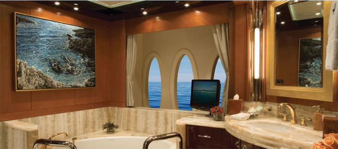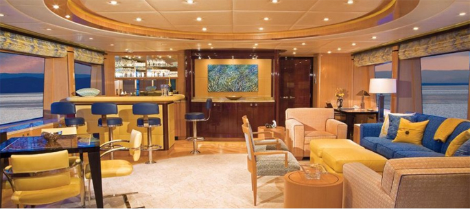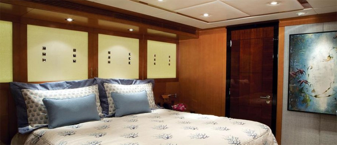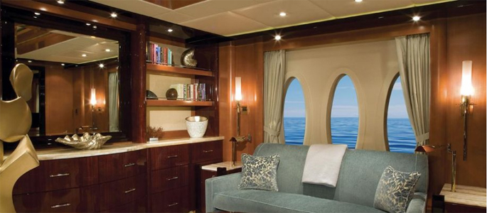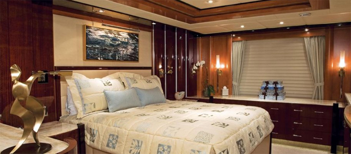 Phòng chủ sở hữu chiếm hết chiều rộng tàu với quầy bar riêng và tủ quần áo lớn.