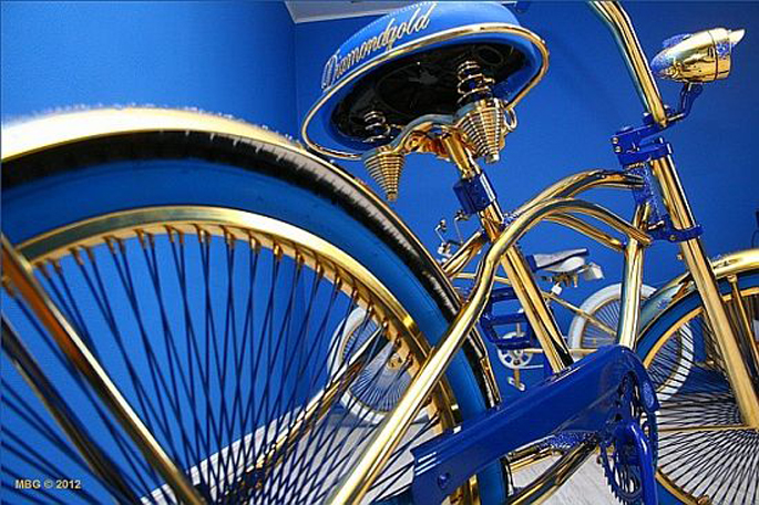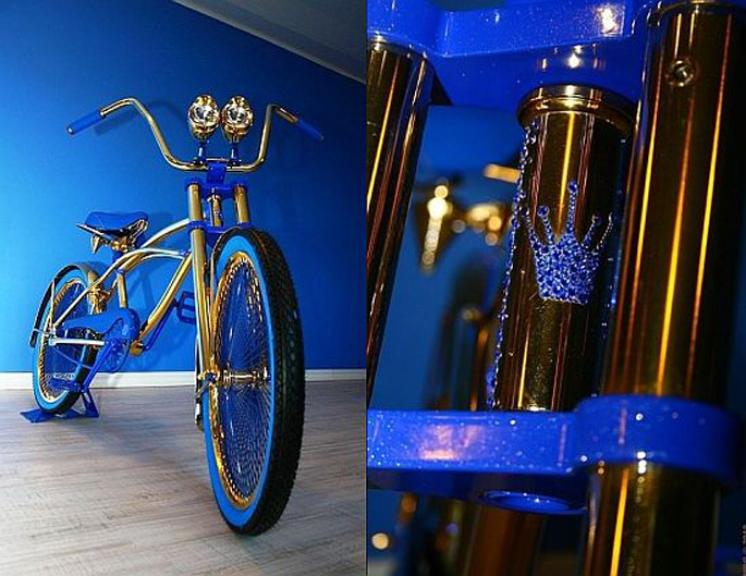 Chiếc xe đạp đắt nhất của Nga Lowrider được nạm 1500 viên pha lê Swarovski với kích thước từ 1mm đến 5mm với khung xe mạ vàng. Người lái có thể ngồi trên yên xe bọc da Italia thêu chỉ vàng. Chiếc xe mất hơn một năm mới có thể hoàn thành. Phiên bản màu xanh dương với lá vàng nguyên chất bọc khung xe có giá 30.000 USD (khoảng 625 triệu đồng).
