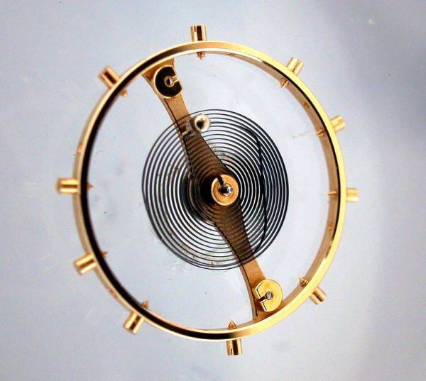 Bánh xe cân bằng và lò xo trong một chiếc đồng hồ Philippe Dufour | ảnh: timezone.com