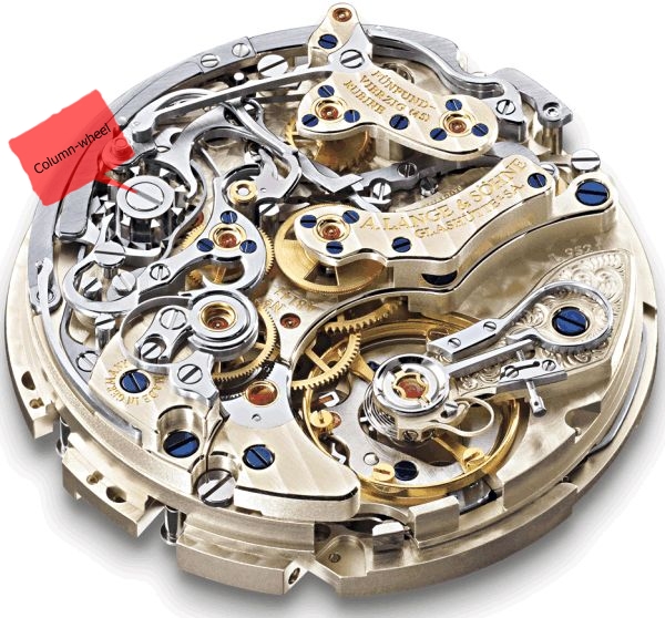 [Đồng hồ] Column-wheel (cột bánh xe điều khiển): là một bộ phận bằng thép với hình dáng giống như những chiếc tháp nhỏ nằm trong bộ chuyển động của một chronograph. Column-wheel điều khiển và đồng bộ hóa tất cả cơ chế hoạt động của một chronograph.