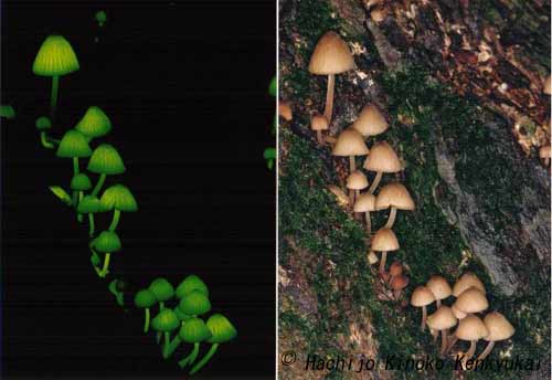 Trước đây, những cây nấm phát sáng chỉ tìm thấy ở vùng đảo Hachijojima (thuộc Tokyo) vào những năm 1950. Nhưng sau đó, các nhà nấm học còn tìm thấy ở vùng bán đảo phía nam là Kii hay Kyushu và các vùng khác… Nấm phát sáng thường phát triển vào mùa mưa tại Nhật Bản, mùa bắt đầu từ cuối tháng 5 cho tới tháng 7. Mũ nấm có thể phát triển tới đường kính 2cm nhưng bởi sự mất nước, nấm thường chết sau khi mưa tạnh vài ngày.