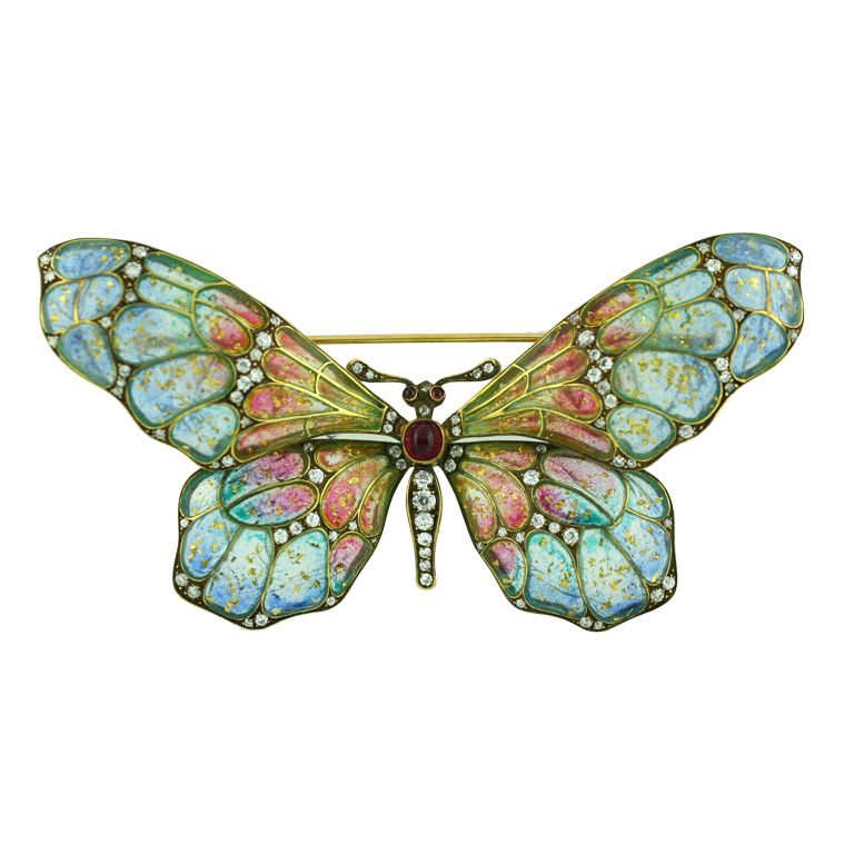 [Chế tác] Plique-à-jour: theo tiếng Pháp nghĩa là để cho ánh sáng đi vào. Đây là một kỹ thuật tráng men thuỷ tinh – men được phủ lên các diện tích nhỏ gần giống như kỹ thuật men ô (cloisonné) nhưng không có lớp nền phía sau vì thế ánh sáng có thể đi qua lớp màu men trong. Hiệu ứng của kỹ thuật này giống như chúng ta nhìn lên những bức tiểu hoạ vẽ trên kính màu (trong nhà thờ). Kỹ thuật này rất khó, đòi hỏi tính kiên nhẫn, tỉ mỉ và mất nhiều thời gian (khoảng 4 tháng trên một sản phẩm) với khả năng thất bại cao. Vì thế nó chỉ được áp dụng trên những bề mặt rất nhỏ, bằng phẳng, ít bị co giãn.