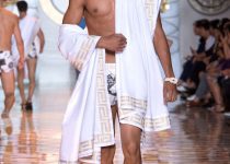 Nhắc đến Nam Mỹ không thể không nhắc đến những bãi biển trải dài phủ đầy cát. Với BST Versace mùa tới, những mẫu underwear và swimwear mang hơi hướng Roman được kết hợp cùng khăn tắm to bản trang trí với mô-típ Medusa hoặc áo toga (kiểu áo khoác dài đặc trưng của người La Mã xưa).